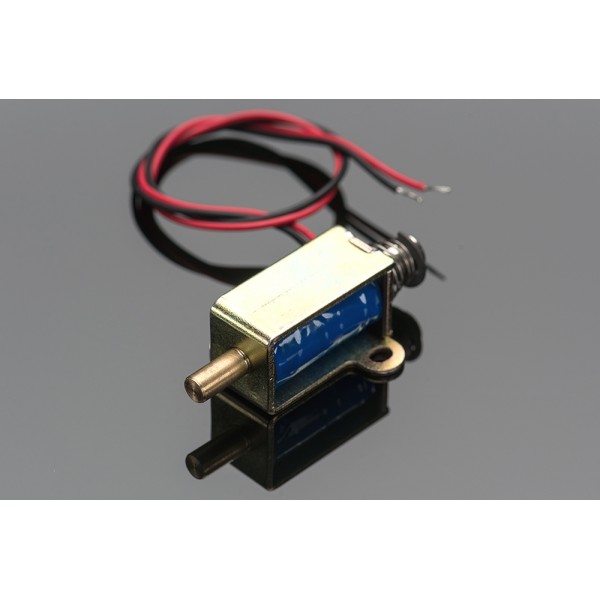 This solenoid in particular is fairly small, with a 30mm long body and a 'captive' armature with a return spring. This means that when activated with up to 24VDC, the solenoid moves and then the voltage is removed it springs back to the original position, which is quite handy. Many lower cost solenoids are only push type or only pull type and may not have a captive armature (it'll fall out!) or don't have a return spring. This one even has nice mounting tabs, its a great all-purpose solenoid.