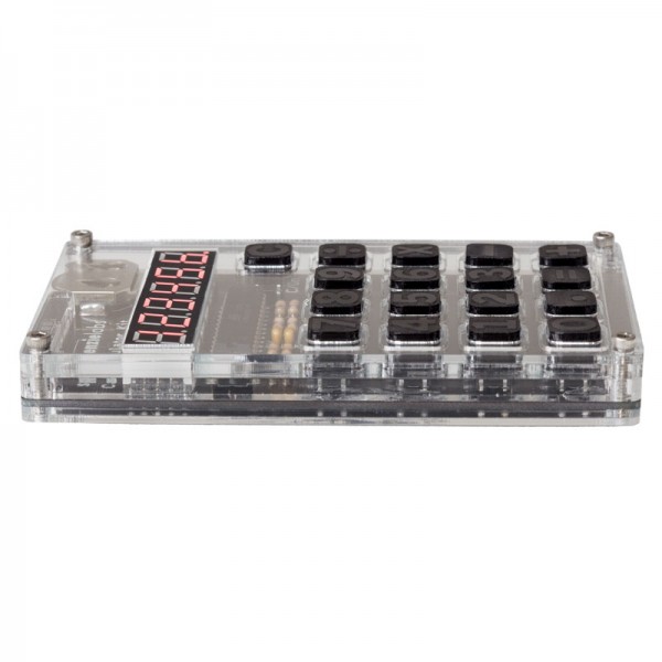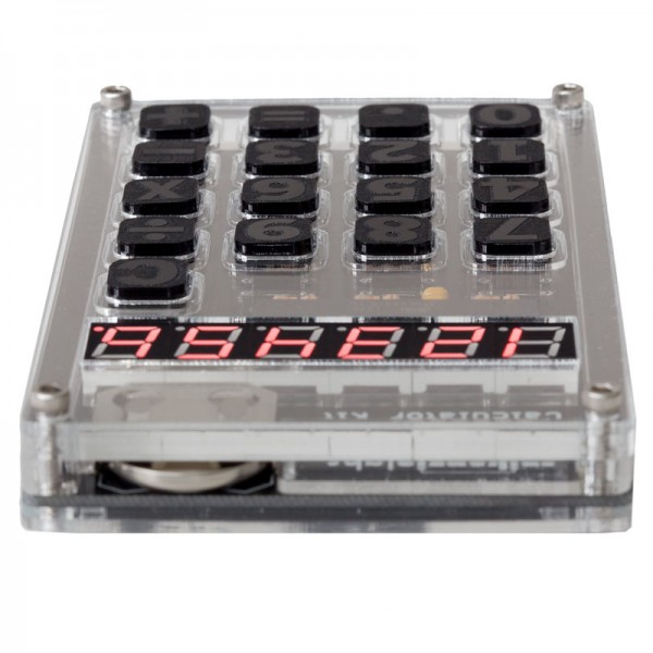 Once the PCB is soldered, and the laser cut acrylic case is assembled, you will notice the buttons have an awesome click when pressed. A fully functional six digit calculator that is as useful as it is attention grabbing. Every maker should have one on their desks!